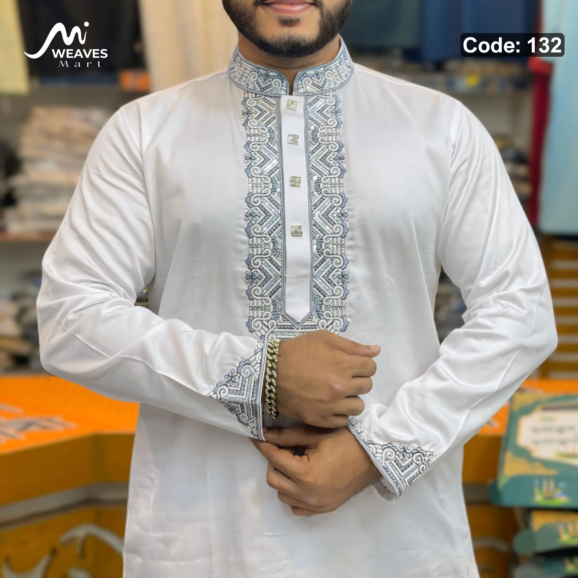 প্রিমিয়াম সাটন সুতি এমব্রডারি পাঞ্জাবি - 132