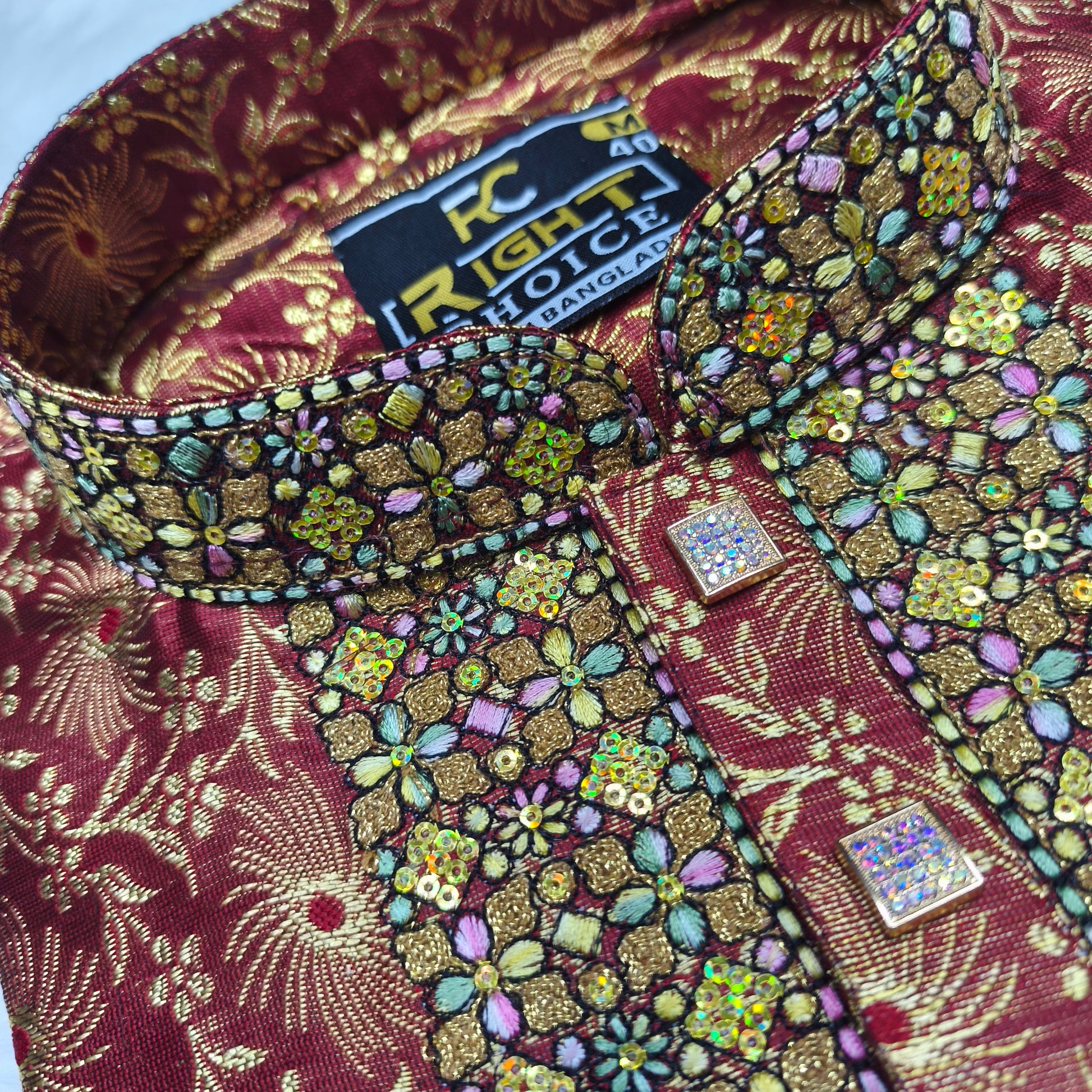 লাক্সারি কাতান কাপড়ের রাজকীয় পাঞ্জাবি - 840