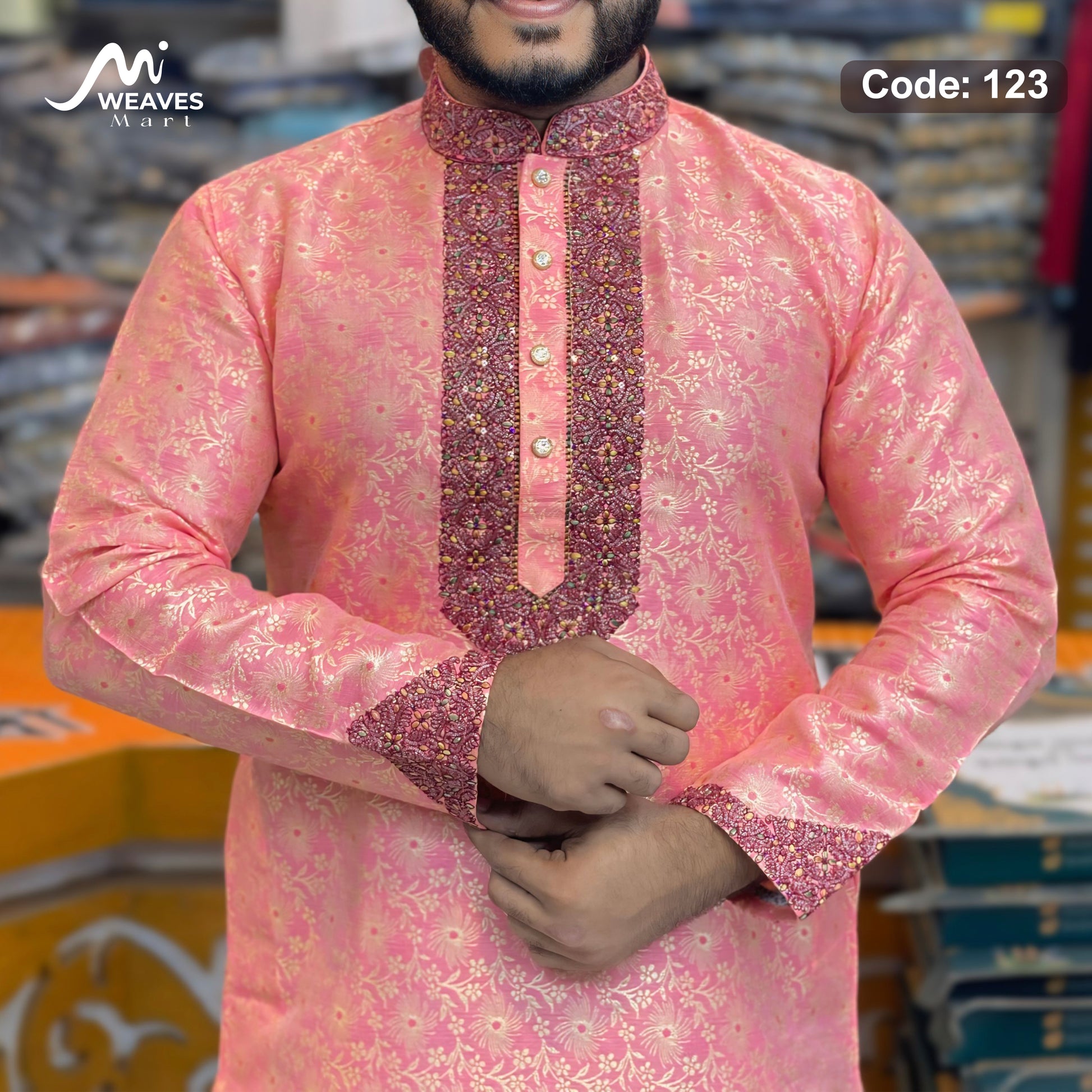 লাক্সারী কাতান কাপড়ের রাজকীয় পাঞ্জাবি – 123