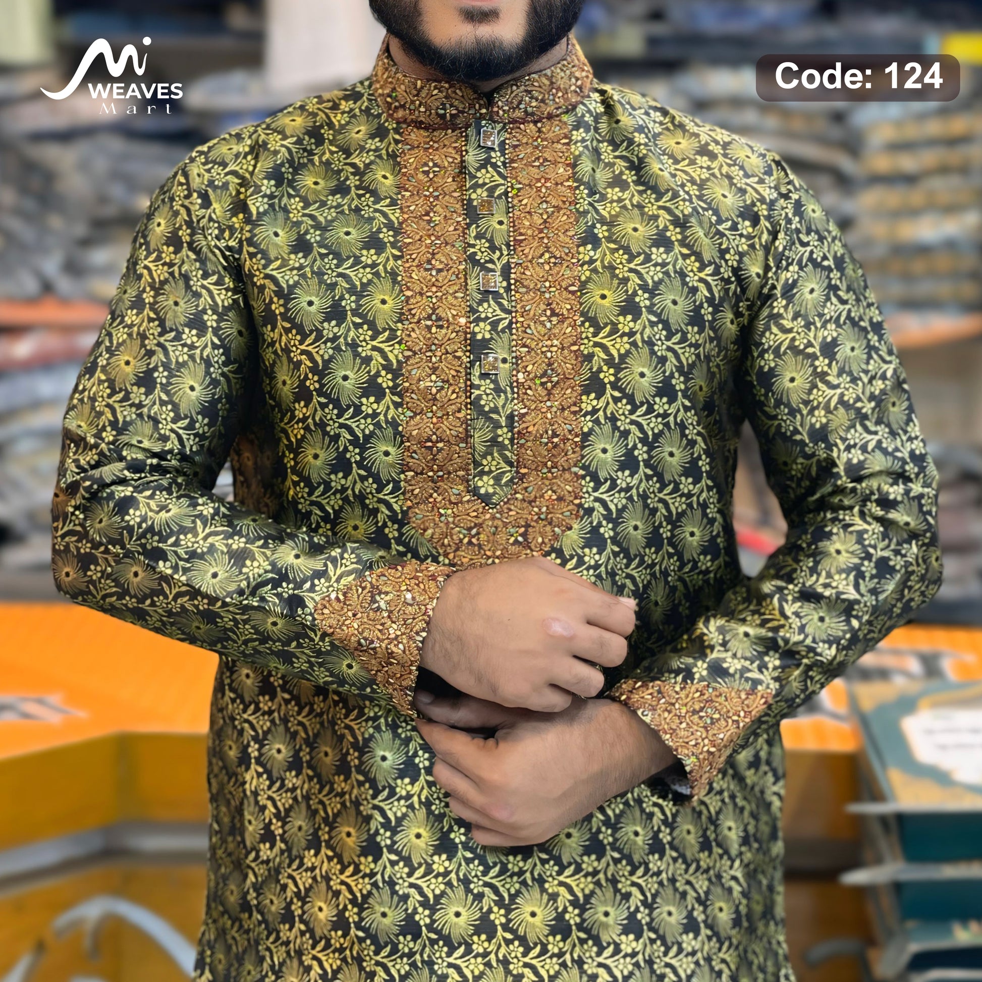 লাক্সারী কাতান কাপড়ের রাজকীয় পাঞ্জাবি – 124